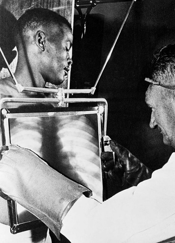 Рентгенолог проверяет желудок шахтера на наличие проглоченных алмазов, Кимберли, ЮАР, 1954 год