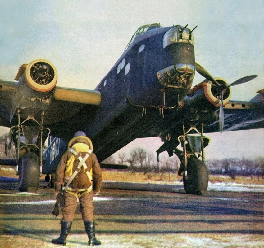 Тяжелый английский бомбардировщик Стирлинг на старте в Mildenhall, графство Саффолк, 1942 год