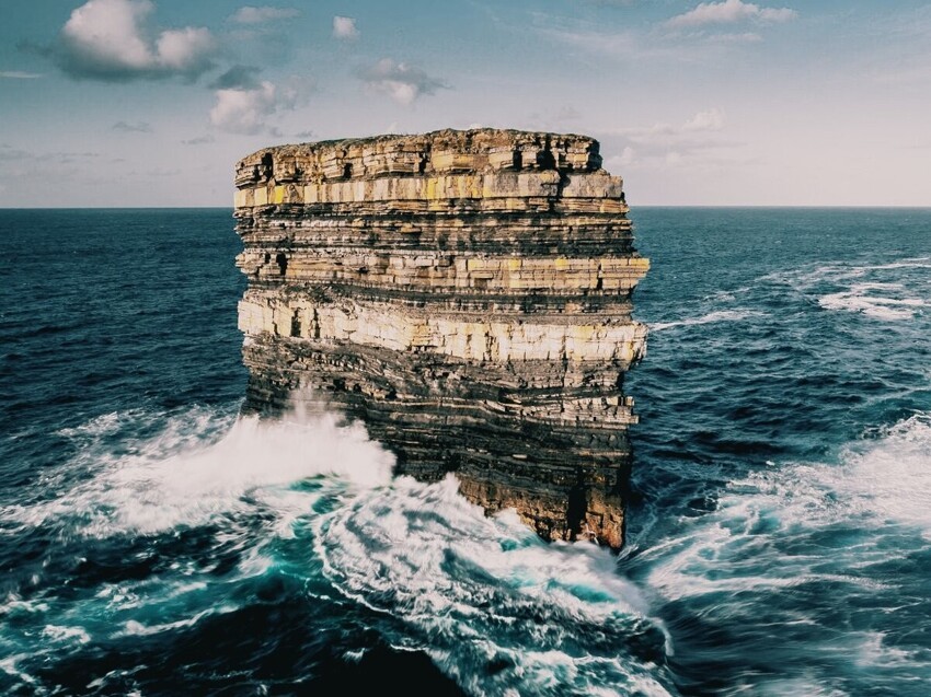 Одинокая скала Dun Briste в Ирландии знаменита тем, что является частью мыса, обвалившегося в обозримом прошлом, в 1393-м году, о чём сохранились местные свидетельства. Ну и тем, что связана с историей Святого Патрика, считающегося покровителем Ирландии.