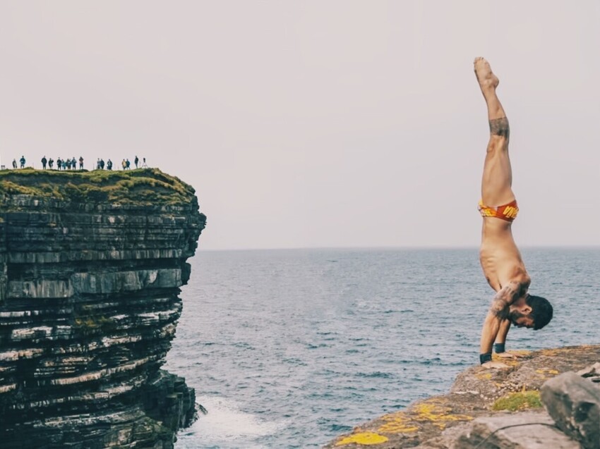 Впрочем, берег мыса напротив – то есть Downpatrick Head – точно такой же. Из-за этого их облюбовали поклонники таких экстремальных видов спорта, как клифф-дайвинг (прыжки с высоты в открытую воду) и альпинизм. К слову, всего несколько человек смогли подняться на вершину этой скалы, используя исключительно альпинистское снаряжение.