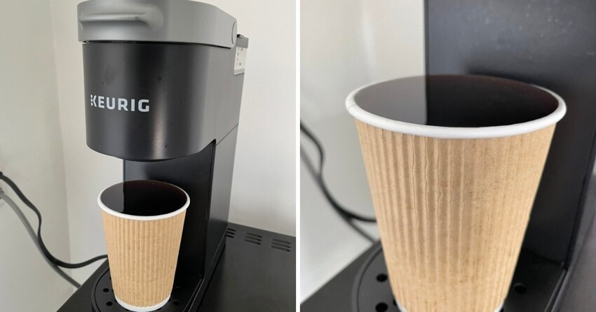 Кофеварка в гостиничном номере налила кофе до самых краёв стаканчика