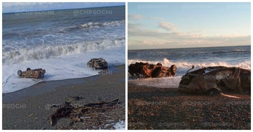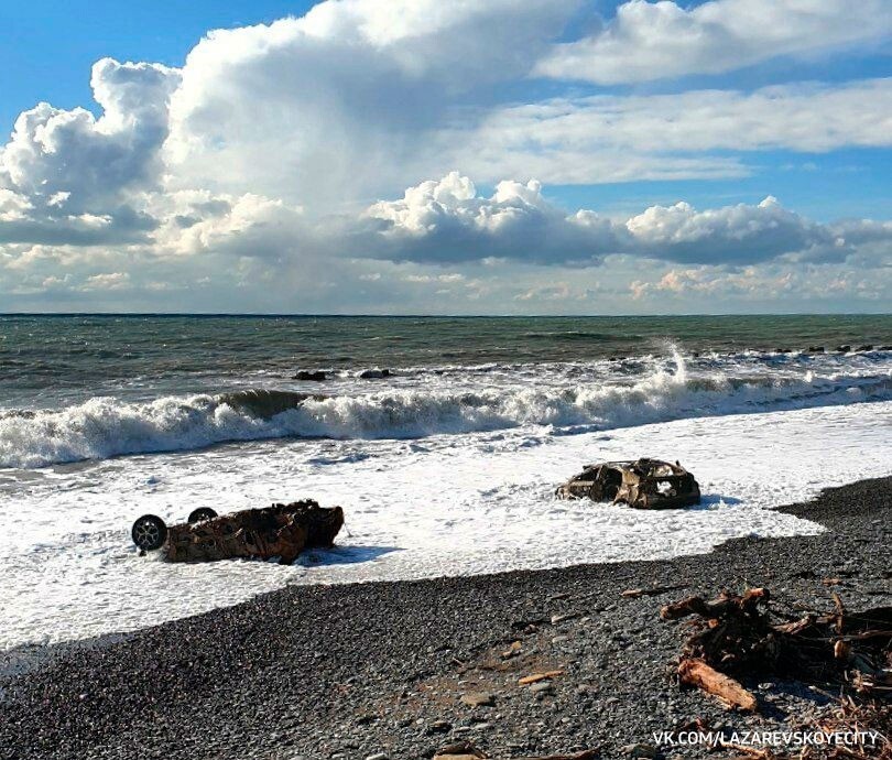 В ночь на 16 февраля шторм вынес на пляж Лазаревского района Сочи искорёженные остовы двух легковых автомобилей. Необычную находку обнаружили жители посёлка Головинки, сообщают местные паблики. Самое интересное в этой истории, что это могут оказаться машины, которых унесло в море в июне прошлого года, когда на регион обрушился свирепый шторм.