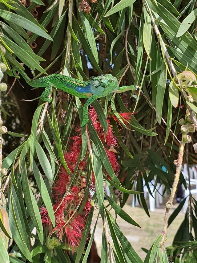 Хамелеон увидел меня, и тут же попытался слиться с обстановкой