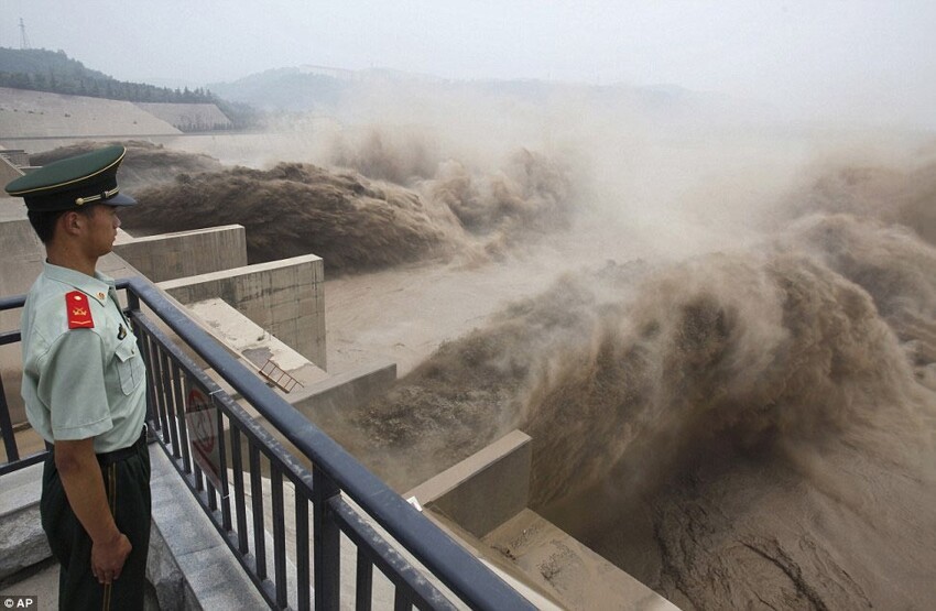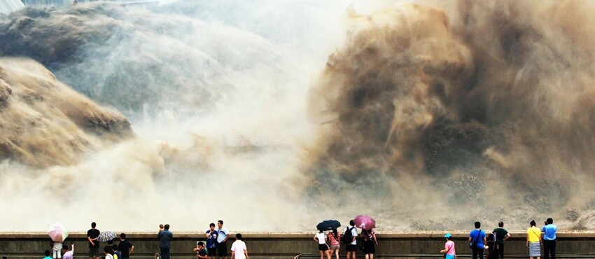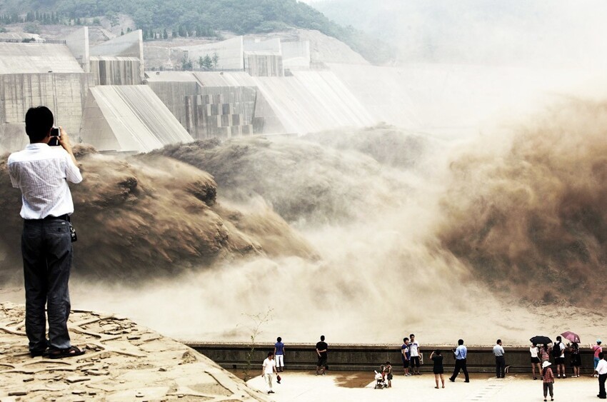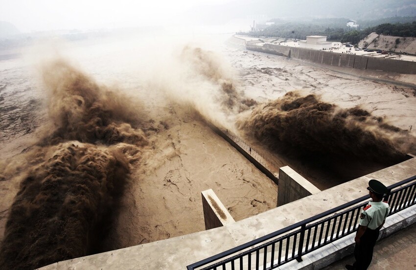 Открытие водохранилища на знаменитой реке Хуанхэ — впечатляющее зрелище. После открытия шлюзов из резервуара несутся огромные потоки воды и песка. Такой сброс воды позволяет очистить течение реки от ила и предотвратить локальные наводнения.