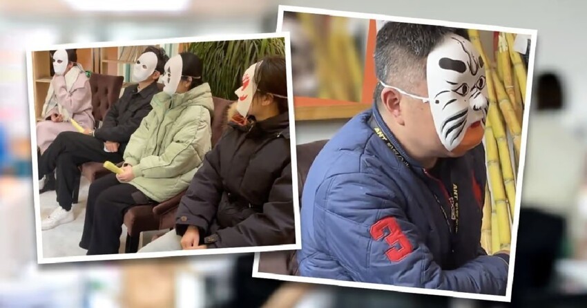 В Китае соискателям на собеседовании выдали маски, полностью закрывающие лицо (3 фото)