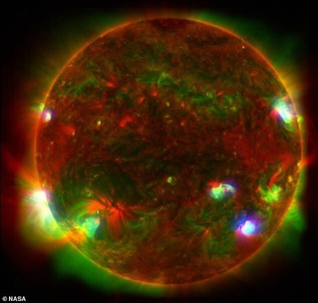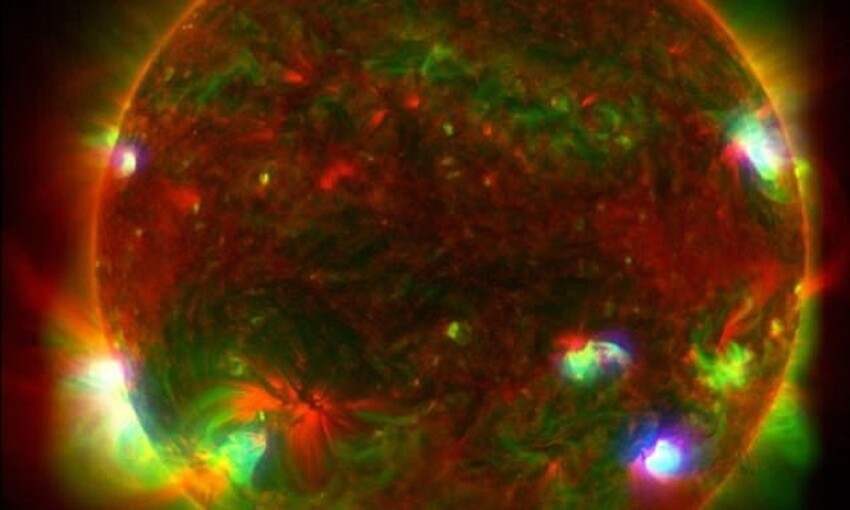 В июне прошлого года NuSTAR сделал 25 фотоизображений Солнца, что позволило НАСА собрать воедино картину, на которой видны лучи разных цветов, исходящие от поверхности звезды. НАСА также собрало наблюдения миссии Hinode Японского агентства аэрокосмических исследований, показанные зеленым цветом, и Обсерватории солнечной динамики, которая зафиксировала ультрафиолетовый свет, обозначенный красным цветом.