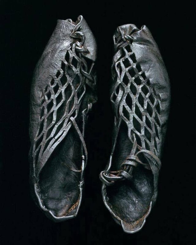 13. Пара туфель сложной формы, созданных 2300 лет назад. Они принадлежали немцу из Дамендорфа