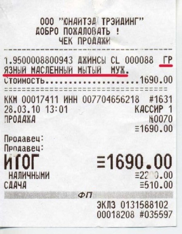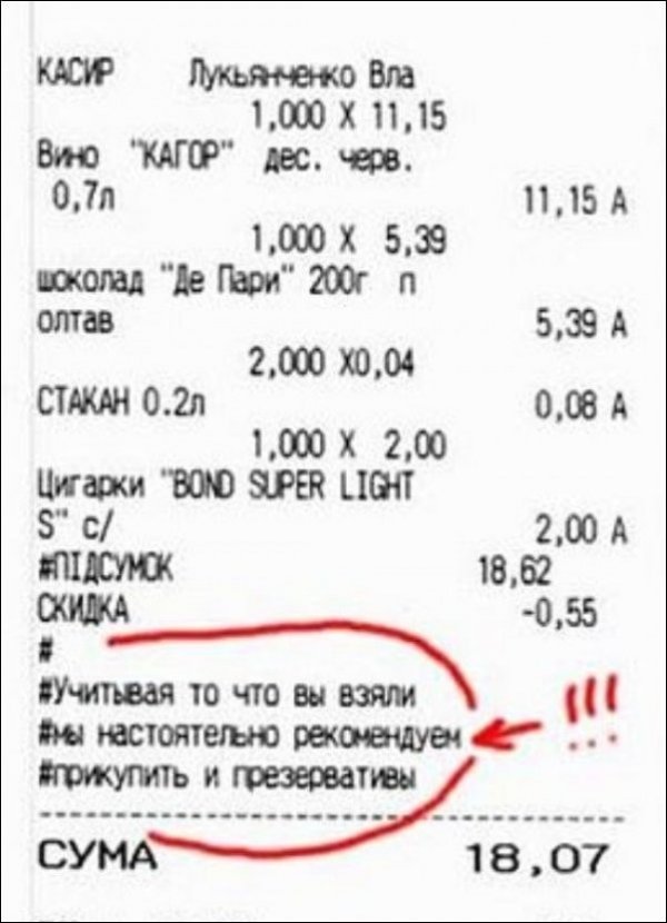 Чеки... кто вообще читает чеки? Пожалуй, только самые экономные и внимательные люди обращают внимание на циферки в этих маленьких белых бумажках. А между прочим, помимо цифр, там можно найти много чего интересного и даже забавного. Порой кассиры пишут нам даже анекдоты.