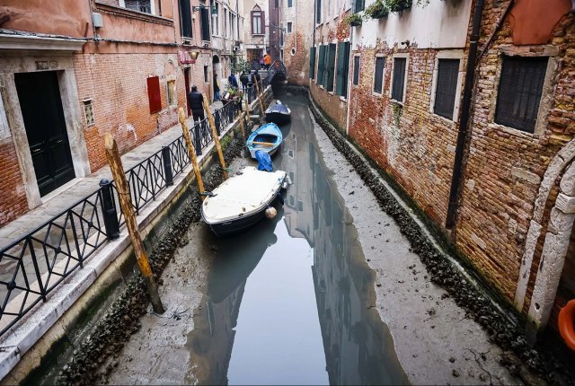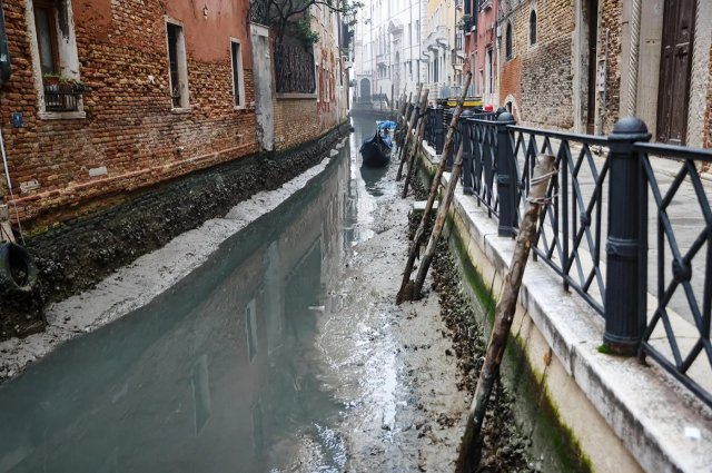 Знаменитые венецианские каналы пересохли из-за циклона, который обрушился на Италию. Уже две недели вода обмелела, оставив после себя канавы, а также исторические архитектурные находки.