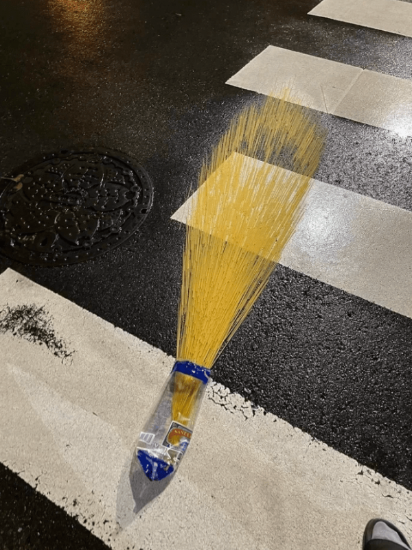 Кто-то не поленился и красиво разложил садовые мётлы в магазине. Получилась залипательная конструкция