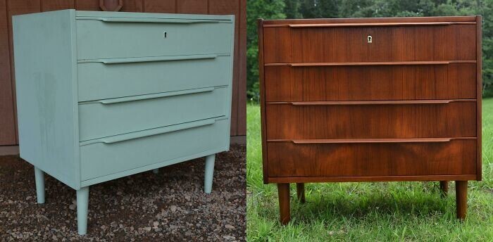 24. "Полностью восстановленный тиковый комод! Не представляю, кто мог намазать 2 толстых слоя краски на этого красавца"