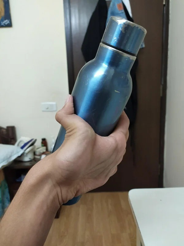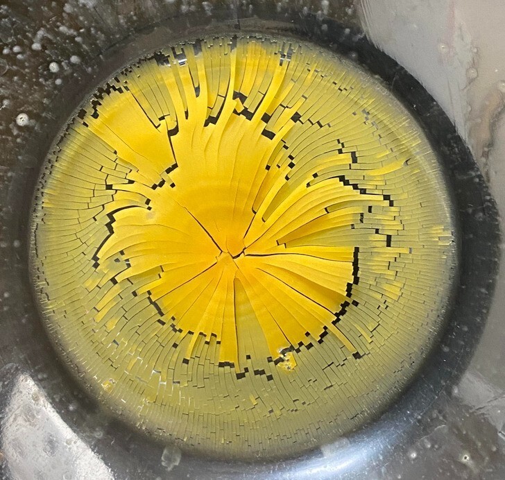 Яйцо засохло на дне мерного стакана, образовав художественную инсталляцию