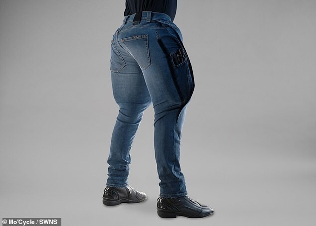 Mo'cycle предлагает не только джинсы, но и жилет с такой же подушкой безопасности, который снижает риск травм позвоночника и стабилизирует шлем водителя.