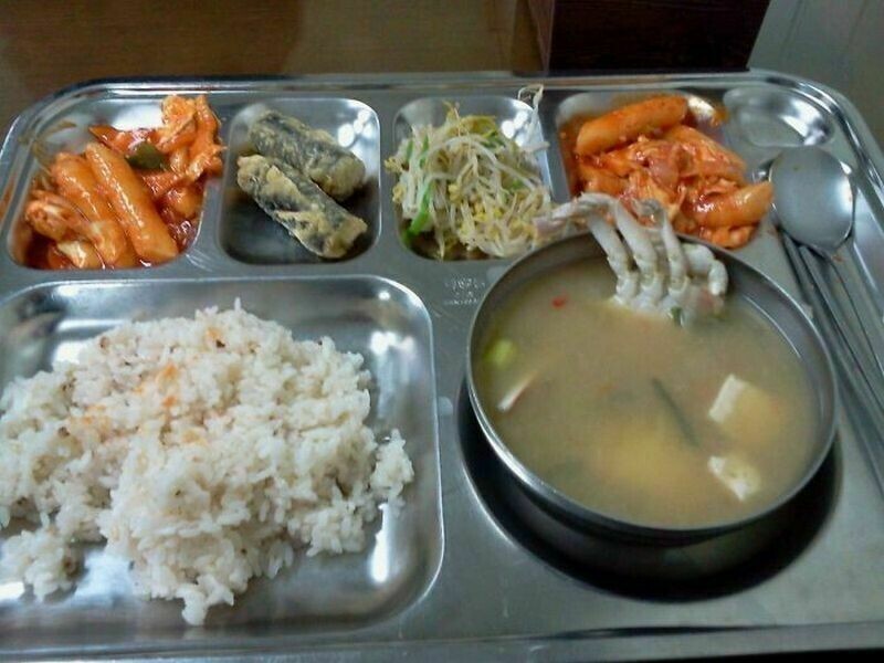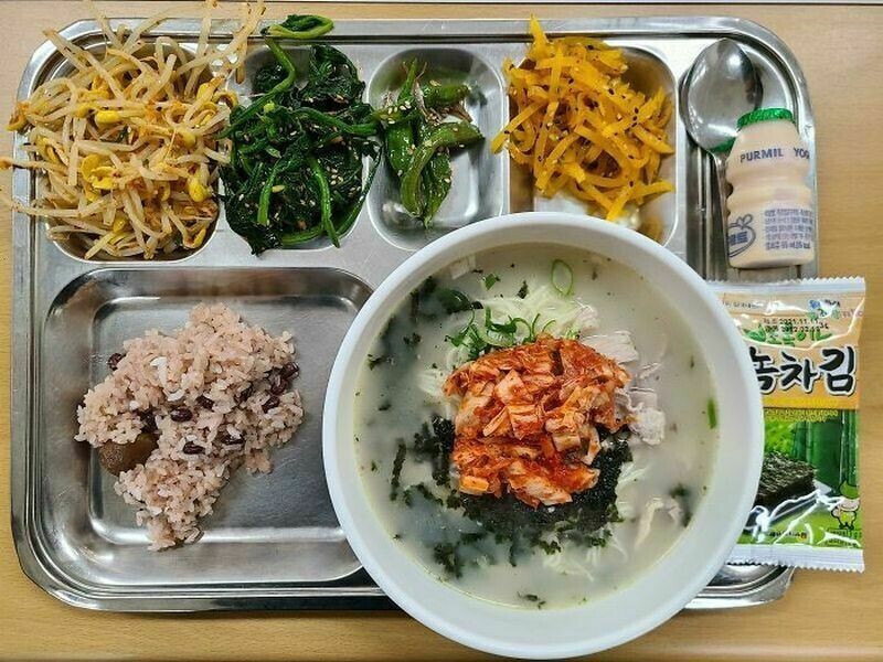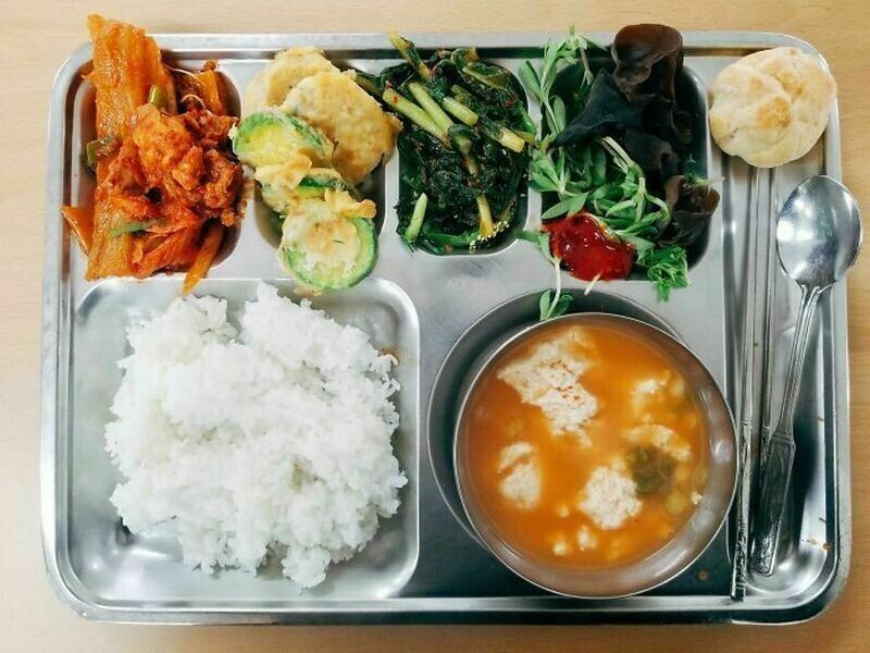 Например, это типичный обед в южнокорейской школе: суп из говядины и несколько гарниров