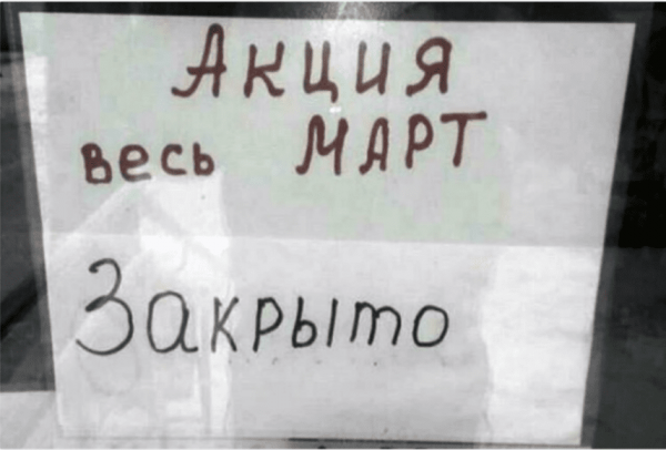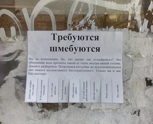 Даже когда роботы будут делать за нас всю работу, все машины будут летать и Марс будет полностью колонизирован, старые добрые бумажные объявления никуда не денутся. Отказаться от них невозможно. Иначе как еще объяснить покупателям, что магазин закрыт или как заставить пациентов надеть бахилы? Да, эти белые листочки с нами навсегда. Плюс ко всему, в эти объявления люди вкладывают всю свою душу и креатив.