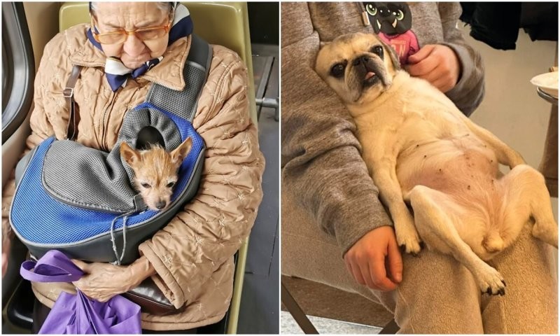 Бабушка со своей собачкой в трамвае