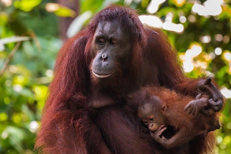 Орангутаны — невероятно умные животные, у которых 97% ДНК совпадает с ДНК человека. Но, к сожалению, все три ныне существующих видов орангутанов находятся под угрозой исчезновения: калимантанский орангутан, суматранский и тапанульский. Как следует из названия, калимантанский орангутан живет на острове Калимантан (или Борнео). Это самые крупные обезьяны, живущие на деревьях, и они подвергаются большой угрозе из-за среды обитания и торговли мясом диких животных. Всего за 20 лет их среда обитания сократилась на 55%. Хотя они более многочисленны, чем суматранские орангутаны, популяция которых составляет около 14 000 особей, популяция калимантанского орангутана сократилась на 50% за последние 60 лет.