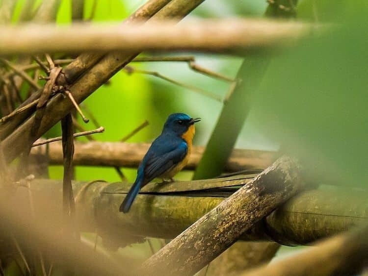 Когда-то эта маленькая певчая птица была одной из самых распространенных мухоловок на островах Ява и Панаётан в Индонезии. Частично ее исчезновение связано с тем, что ее отлавливают и продают в качестве домашней птицы в клетке. На самом деле, более 98 000 яванских голубых мухоловок живут в неволе, и очень немногие все еще живут в дикой природе. Предполагается, что дикая популяция сократилась где-то с 60% до 90% за последние несколько лет, и все меньше продавцов продает их на рынках певчих птиц в Индонезии.