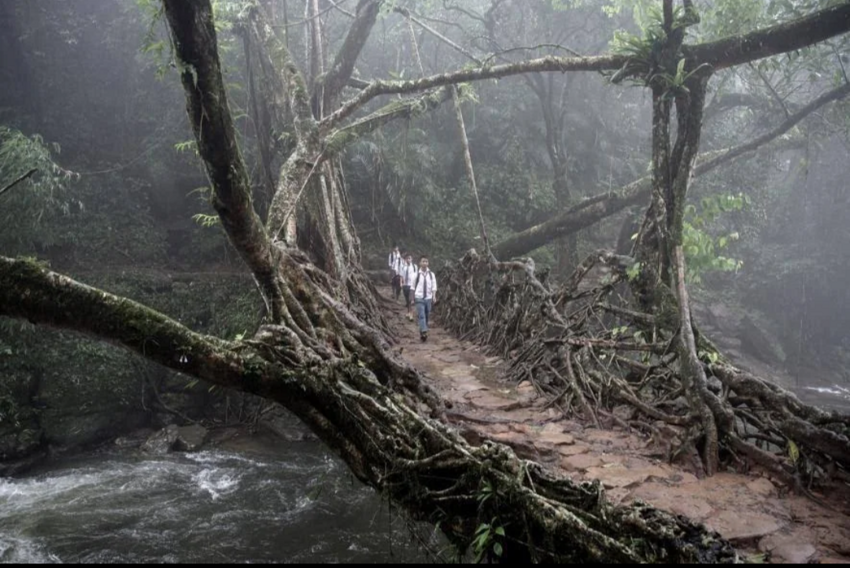 В Индии есть племя, которое научилось делать живые мосты из корней фикуса. Строительство мостов занимает от 15 до 30 лет