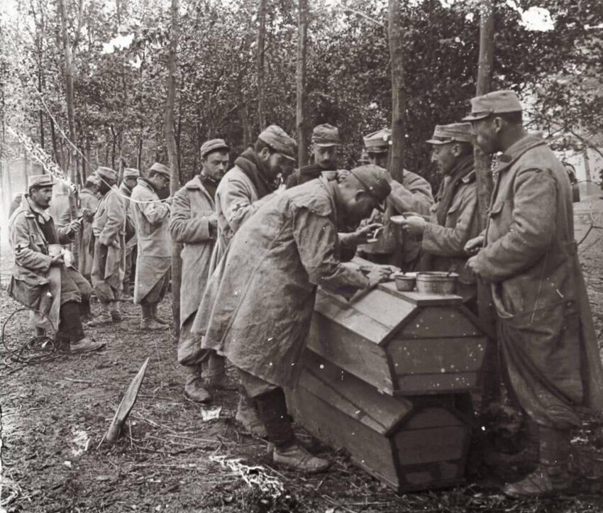 1. Французские солдаты обедают на гробах. Первая мировая война