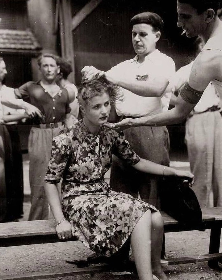 13. Французы бреют голову женщине, которая была уличена в отношениях с немецким офицером. 1944 год