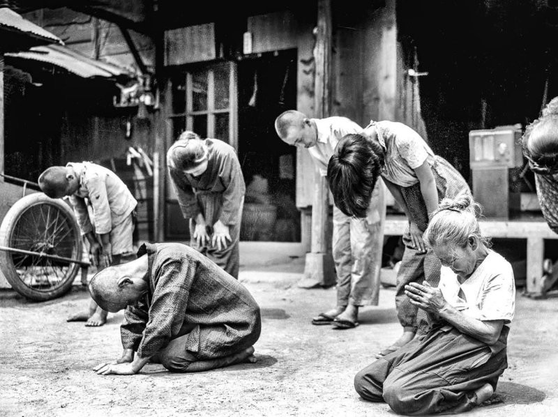 8. Японцы слушают сообщение императора о капитуляции. Япония, 1945 год