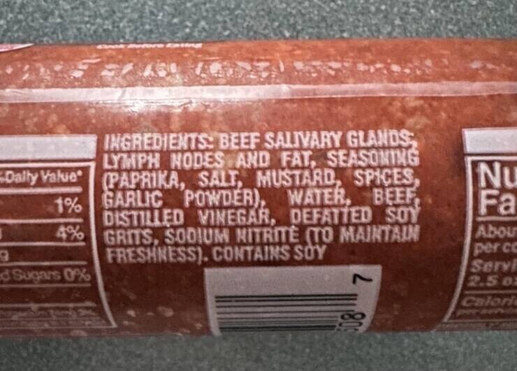 "Состав: "говядина (слюнные железы, лимфатические узлы, жир)..."