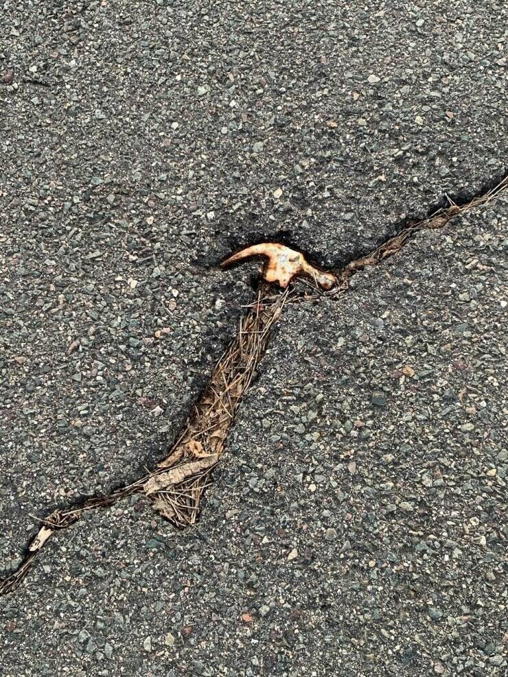 Остатки молотка, застрявшего в асфальте