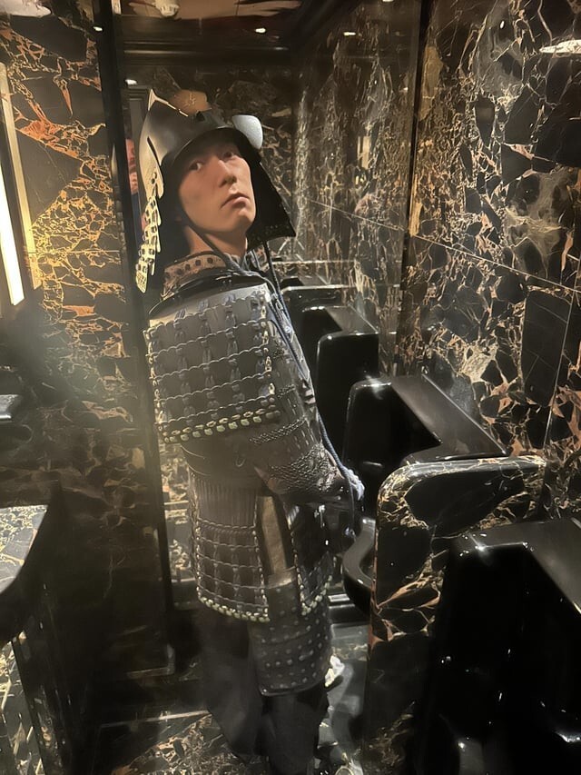 В туалете одного бара в Японии установлена восковая фигура самурая