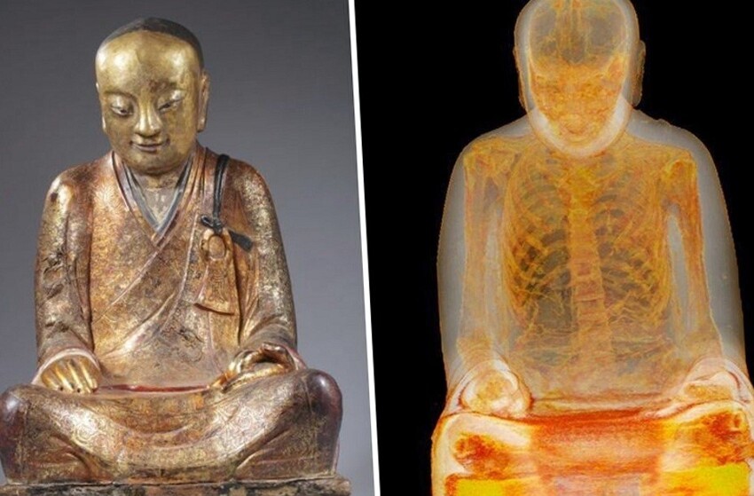 Компьютерная томография 1000-летней скульптуры Будды, с мумифицированным монахом, спрятанным внутри