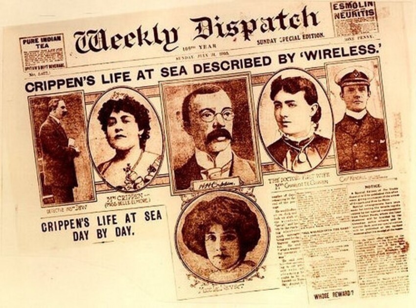 Так заявил в 1910 году некий англичанин по фамилии Нэш, который пришёл в полицейский участок, чтобы заявить о пропаже человека. Кора Криппен, которую публика знала под псевдонимами Кора Тёрнер или Бель Эльмор, ещё вчера принимала его в гостях. А потом неожиданно исчезла. Через несколько дней Нэш получил письмо от Коры, в котором она объясняла исчезновение вынужденным отъездом в Штаты. И всё бы ничего, но практически сразу после исчезновения в дом, где та жила с мужем, въехала любовница последнего – юная Этель.