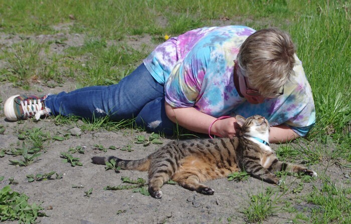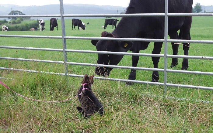 "Удивительно, но шум во время прогулки её совсем не беспокоит - даже если лают собаки или кто-то пользуется шумными инструментами. Гертруда также любит прислушиваться к разным звукам в нашем саду, и охотиться на жучков. Если бы меня попросили дать совет тем, у кого есть животное с похожими особенностями, главный совет - иметь много терпения," - рассказал хозяин.