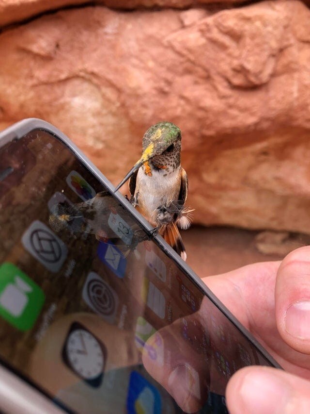 Колибри приземлилась на мой телефон