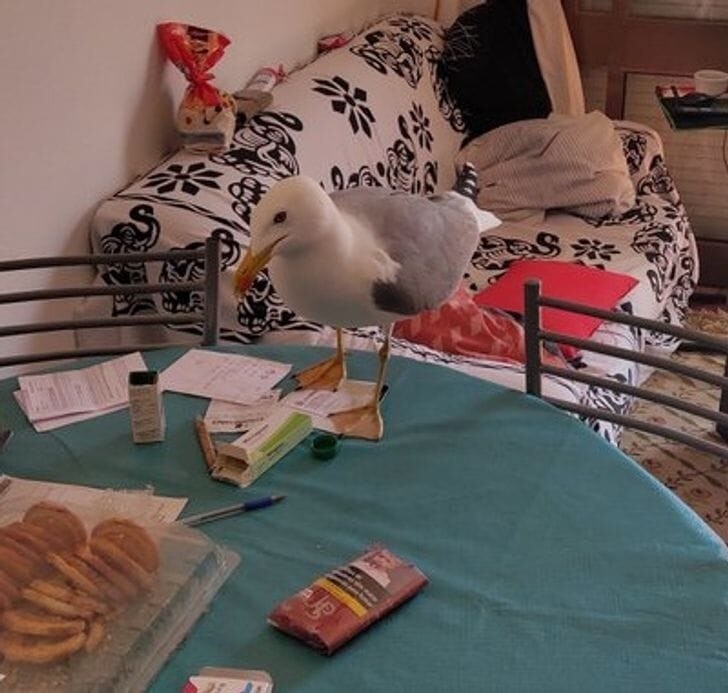 Стоит только оставить окно открытым, как в него залетают чайки и похищают еду!
