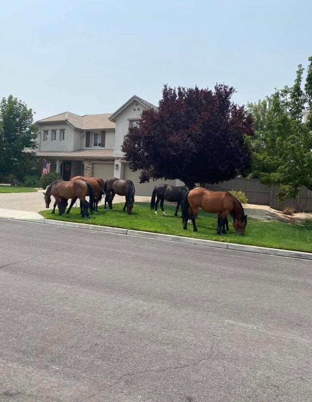 Утром к соседям на газон пришли дикие лошади