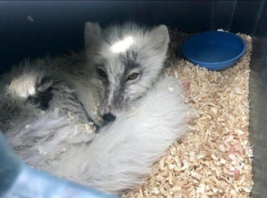 Каким то образом на льде находилась арктическая лиса - довольно редкое животное. Ее сразу же поместили в теплое помещение судна, дали попить и предоставили мягкую постель.