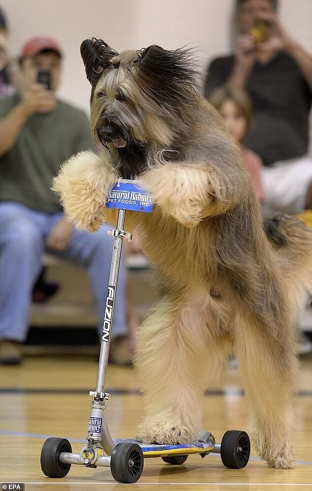 Пёс по кличке Норман стал рекордсменом, быстрее всех преодолев расстояние в 30 метров на самокате. Пёс породы бриар из США преодолел эту дистанцию за 20,75 секунды. Он также умел крутить педали велосипеда с тренировочными колесами и кататься на скейтборде.