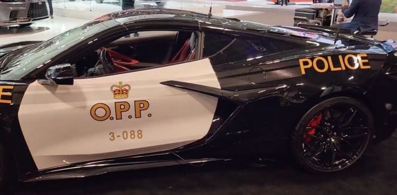 Corvette Z06 дебютировал в цветах Отдела безопасности дорожного движения на магистралях. Визуально полицейское купе отличается от обычного только служебной чёрно-белой окраской с многочисленными наклейками Police и знаками различия полиции провинции Онтарио.