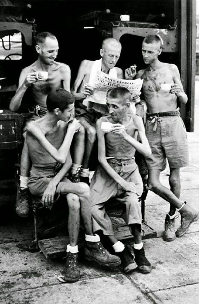 21. Сентябрь 1945 года. Австралийские солдаты читают новости из дома после освобождения из японского плена в Сингапуре