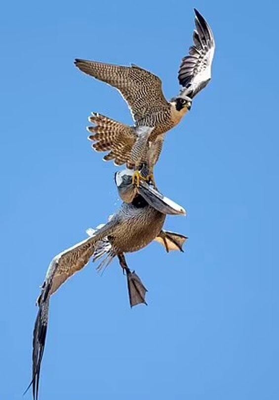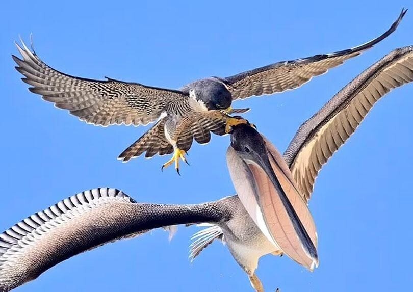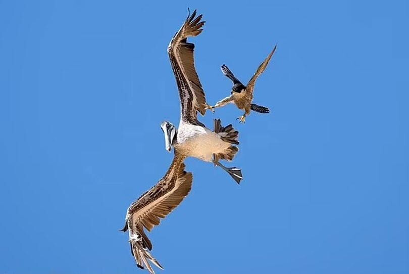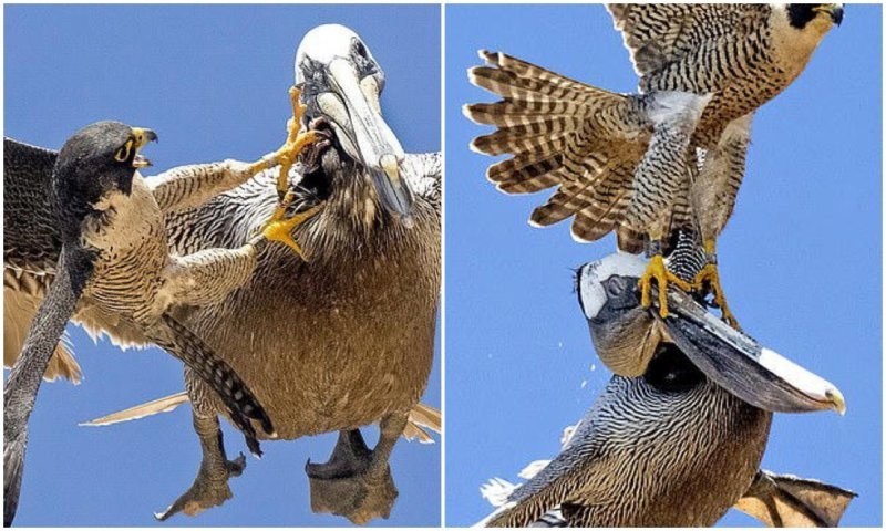 Фотограф заснял эпичное нападение сокола на пеликана (8 фото)