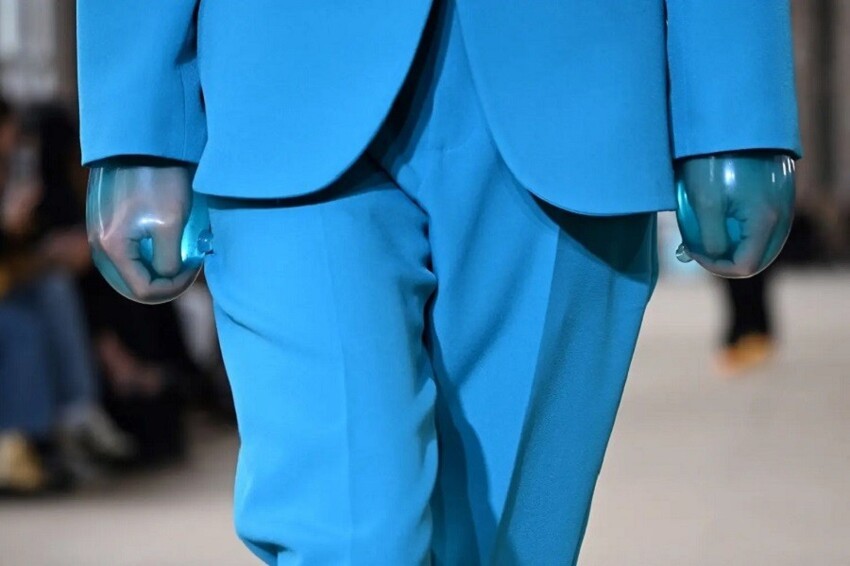 Дизайнеры модного бренда Botter придумали добавить моделям на руки вместо перчаток презервативы, наполненные синей водичкой. Во время ходьбы они забавно пульсируют: гулп, гулп, гулп.