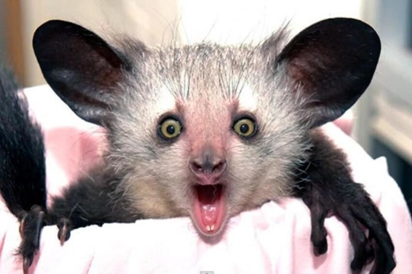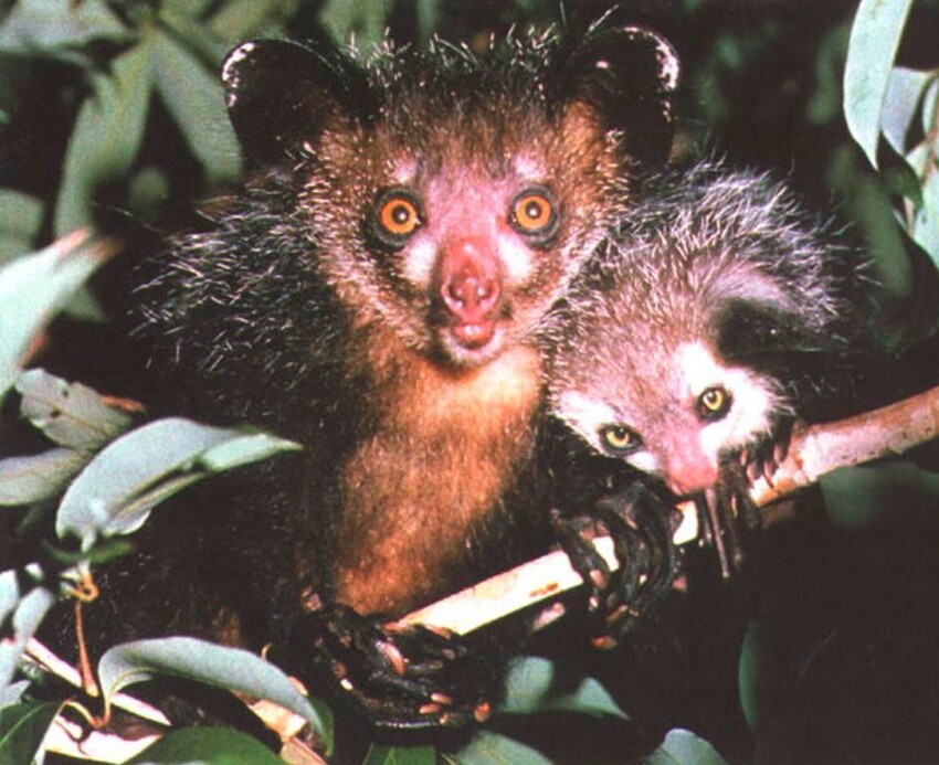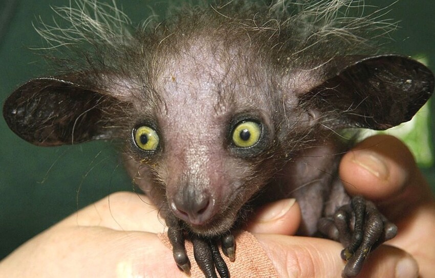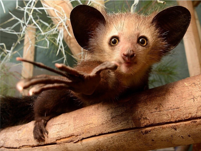 Один из наиболее загадочных представителей фауны - это ай-ай, или руконожка, обитает на Мадагаскаре. Это существо - какая-то сборная солянка разных животных: его длинные пальцы напоминают лапы обезьяны, а острый нос и зубы характерны больше для грызунов. А на самом деле ай-ай - один из видов лемуров.
