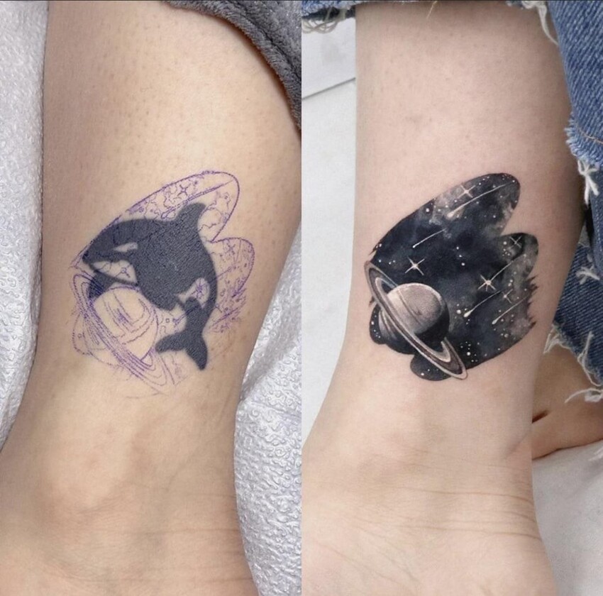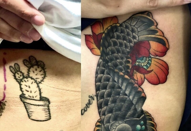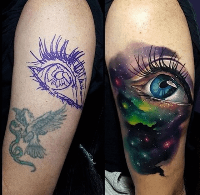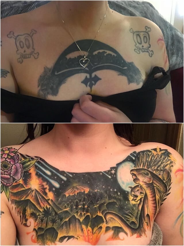 Иногда людям хочется, чтобы уже сделанная татуировку навсегда исчезла. Для этого они вновь идут к мастеру, но с другим эскизом. Порой новые рисунки на теле выглядят так, словно старых и не было вовсе.