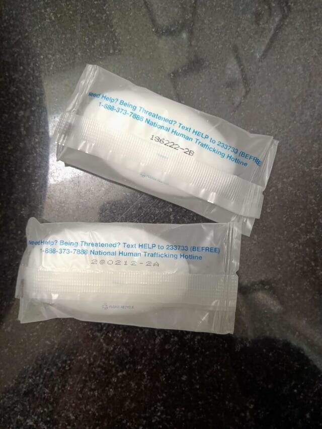 32. "На мыле в отеле, в котором я остановился, указан телефон национальной горячей линии по борьбе с торговлей людьми"