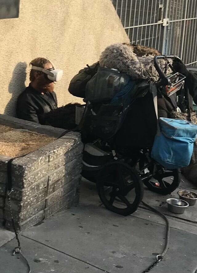 31. "Бездомный в Кремниевой долине в VR-очках"