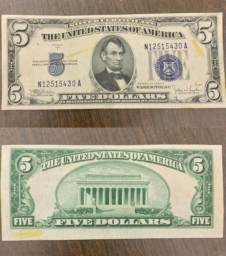 30. "Сегодня на работе со мной расплатились пятидолларовой купюрой 1934 года"