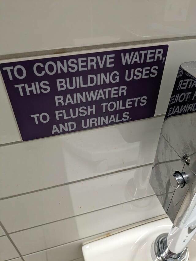 13. "Чтобы экономить воду, в этом здании для смыва туалетов и писсуаров используется дождевая вода"