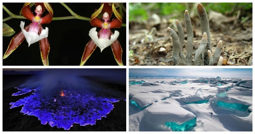 Чего только в мире нет! Цветы, похожие на балерин, грибы, похожие на пальцы мертвеца, вулканы с ярко-синей лавой, синие пчёлы, бирюзовый лёд озера... Всего и не перечесть. Вот небольшая коллекция чудес природы, от которых захватывает дух.