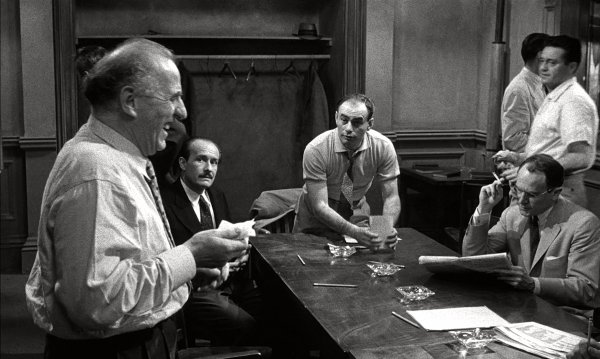 12 присяжных закрылись в совещательной комнате, чтобы вынести вердикт по делу, в котором всё понятно. Но так ли понятно, если на обсуждение понадобилось полтора часа, а мужчины из обычных превратились в разгневанных?
