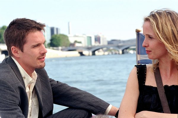 Итана Хоук и Жюли Дельпи встречаются спустя 9 лет после событий первого фильма («Перед рассветом», 1995) и 80 минут гуляют по Парижу, зная, что скоро вновь расстанутся.